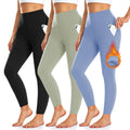 3 Pack Fleece Lined Leggings Women with Pockets -Warm Winter Yoga Pants for Women Thermal Running Workout Leggings